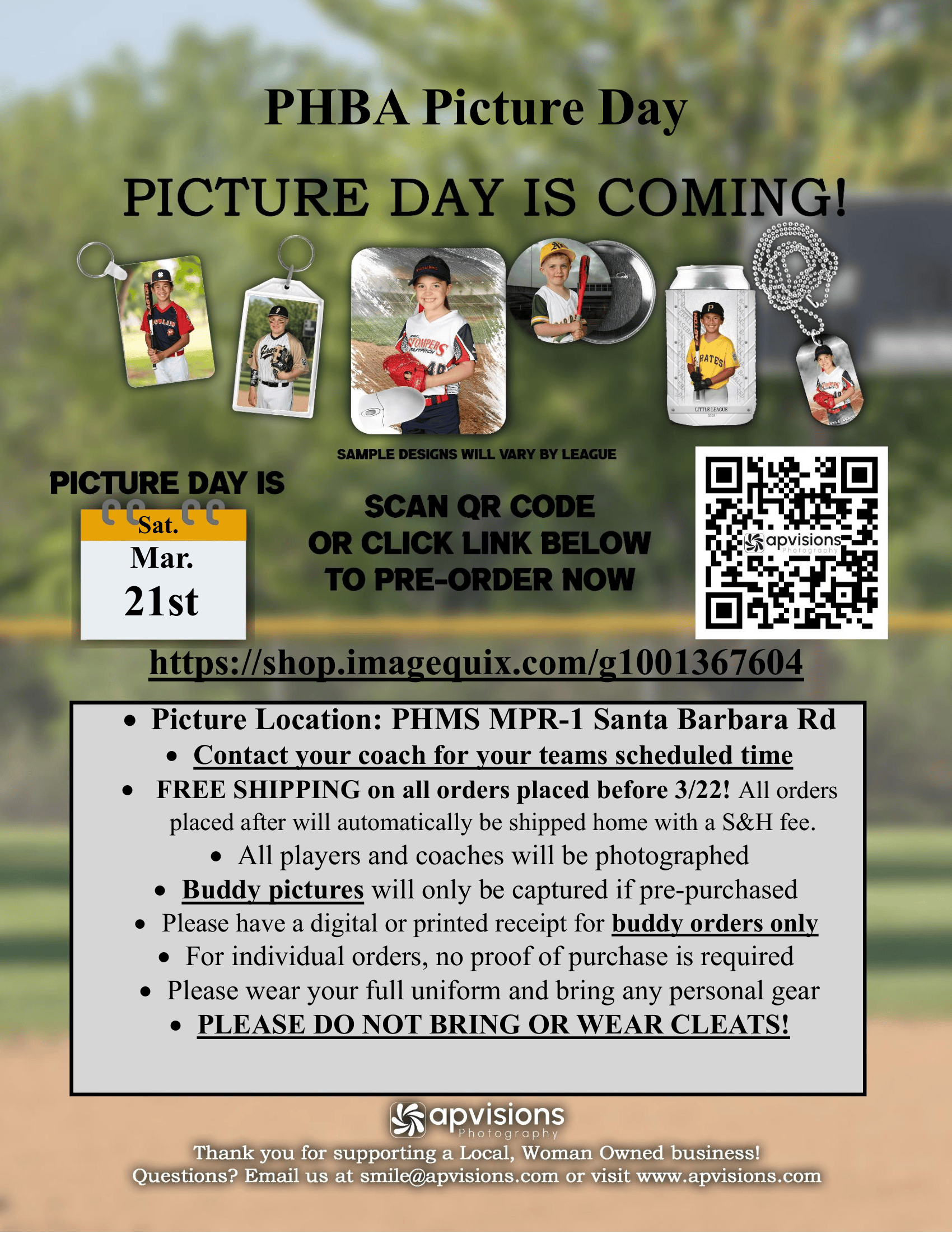 If you have further questions, please reach out to APVisions Photography at smile@apvisions.com. Come out, look sharp, and help capture great memories from the season! βΎπΈ